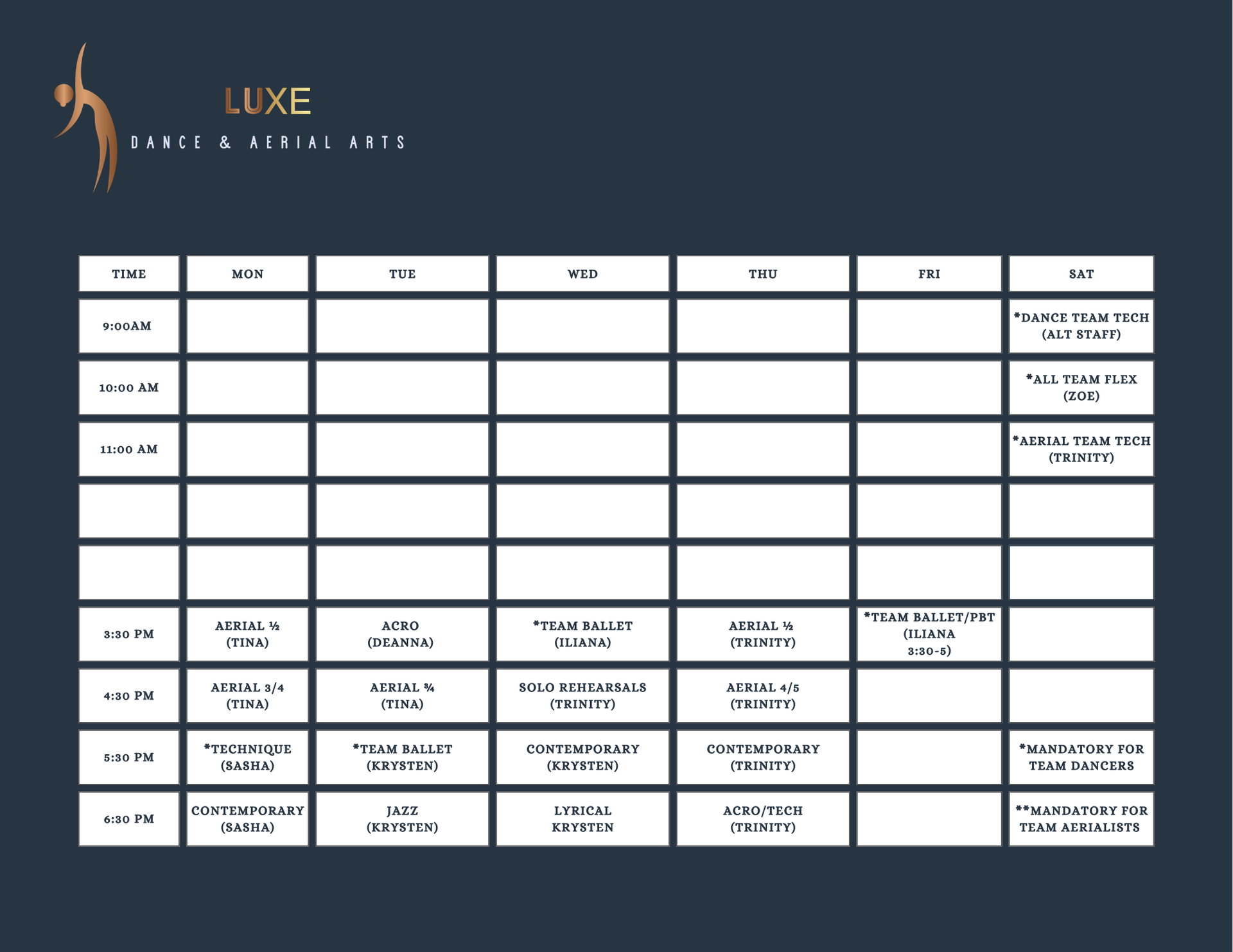 Aerial Arts is an exciting and challenging class where students learn to perform aerial acrobatics using long fabric silks suspended from the ceiling. Dancers will develop strength, flexibility, and aerial skills as they climb, wrap, and pose in the silks. This class emphasizes body awareness, control, and creativity, offering a unique and captivating form of expression in the air.